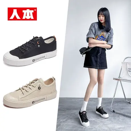 人本帆布鞋女经典女鞋学生板鞋ins街拍原宿小白鞋韩版ulzzang布鞋
